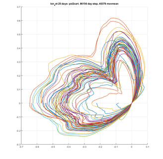 The image above is a polar plot reflecting 25 days worth of longitude data, mapped to earth rotation angle.